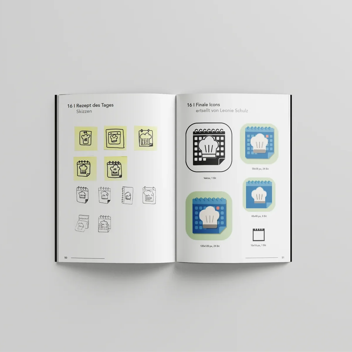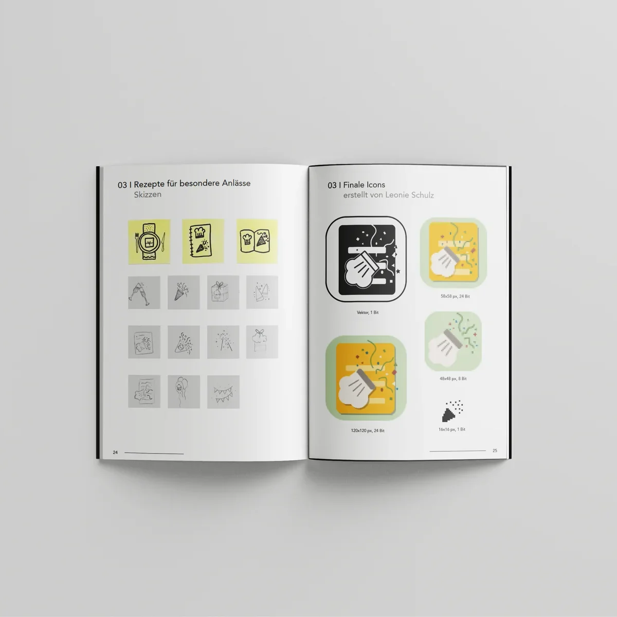 Im zweiten Semester belegte ich die Lehrveranstaltung Interfacedesign im Modul User Interface Design. Im Fokus stand die Gestaltung einer konsistenten und intuitiven Icon-Sprache für eine Koch-App.